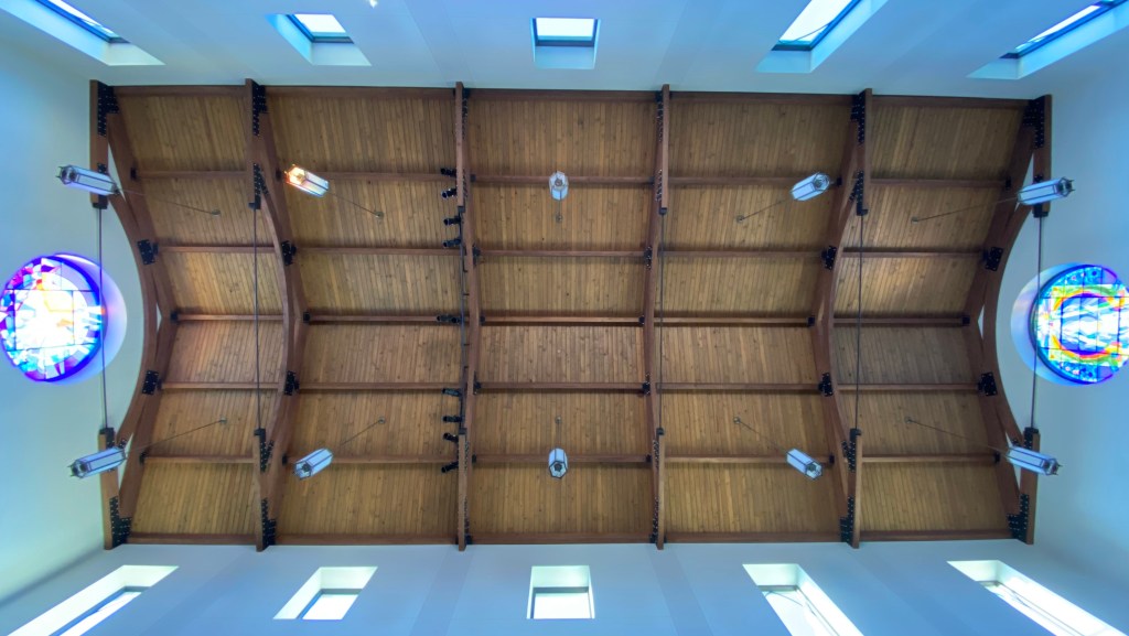I am reminded of the sheer, absolute truth of God’s centrality every time I look at the new stained glass window at the back of the church. While you all mostly look at the front window, I always see the back window. In that heavenly vision from John the Divine, he sees the Lamb, the Lord God at the center of everything. John says that there is no need for a Temple, because at the center of the heavenly city is the Lord God. John says that there is no need for sun or moon, because the Lamb is the lamp, giving light to everything. And yes, while John does see the servants of Jesus there in the heavenly city, they are all facing the Lord God. The final vision of the holy scriptures is that we are drawn in perfect love around the throne of grace. God is at the center. So yes, by all means, the great hope of our faith is that we are all drawn into the heavenly courts. But it’s not like we spend eternity hanging out with friends and family. The vision is much holier than that – the vision is that we are all facing the Lord God (Revelation 21-22).