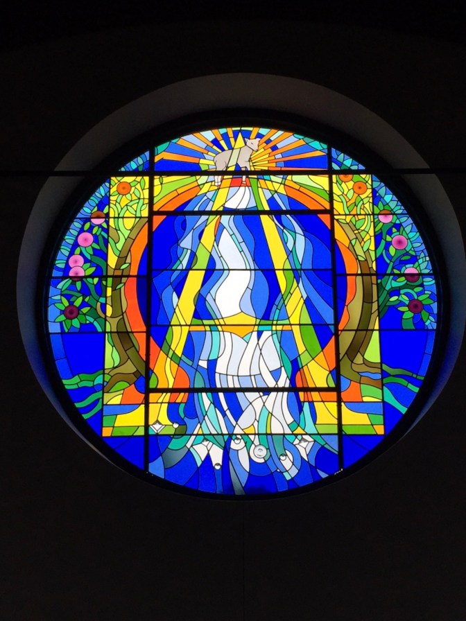 This is our final hope, not our current existence. Turn around and look at the stained glass window in the back of the church, you’ll see exactly what I mean. That stained glass window is a depiction of the final vision in the bible, of the garden in the heavenly courts. That garden, with that tree, is an image of hope; the fruits of that tree are for healing all the sufferings we have gone through in this life (Revelation 22).