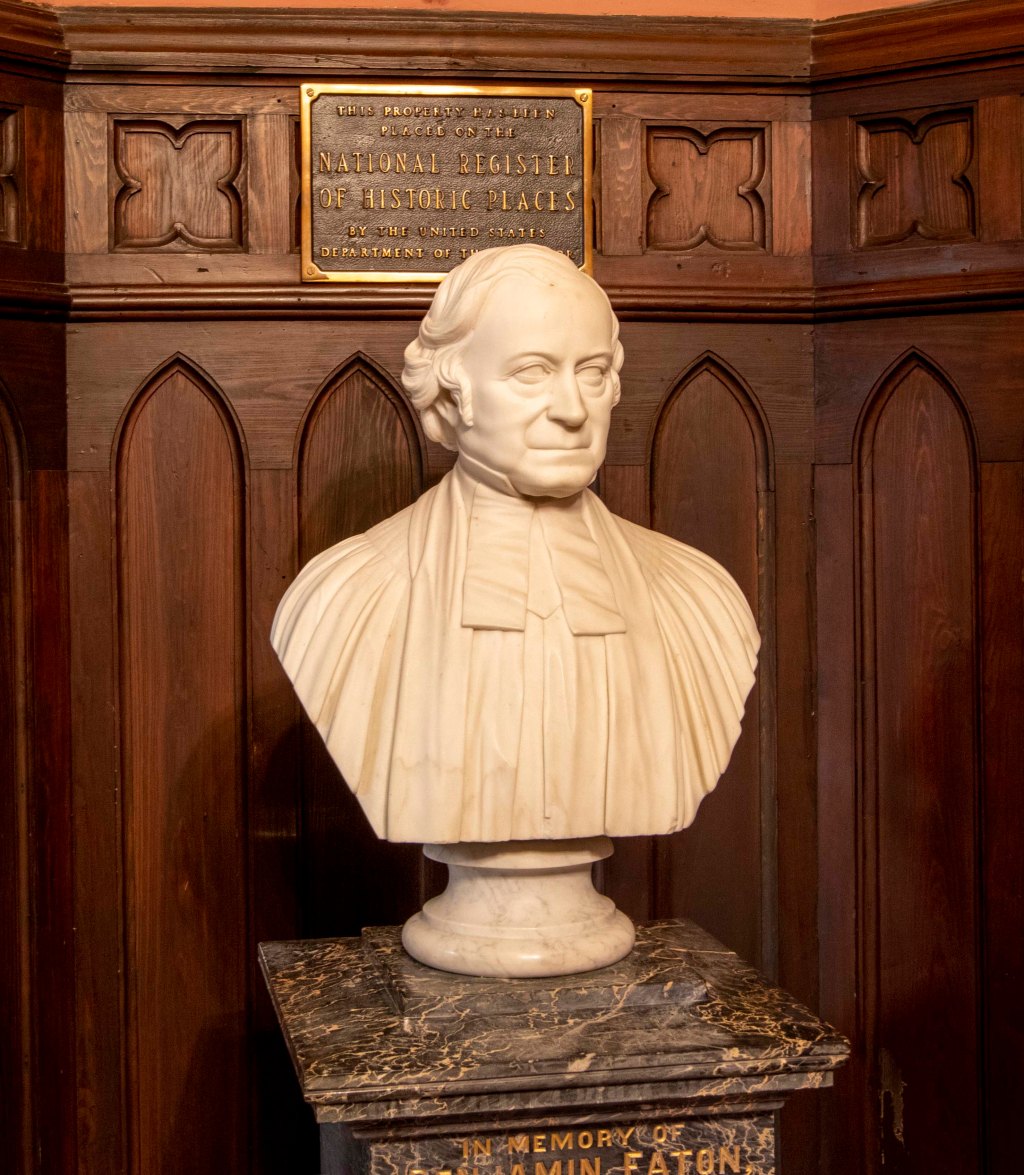 And still today, we honor Mr. Eaton’s memory. He is buried, just over there, under the altar. Eaton Memorial Chapel, now Eaton Hall, was built in his memory. His bust greets you as you enter the church doors. For as long as there will be a Trinity Church, Mr. Eaton’s death will not be forgotten.